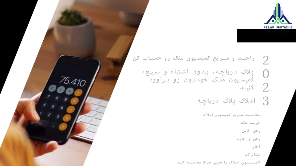 املاک پلاک دریاچه میتوانید به سرعت حق کمیسیون دقیق را محاسبه کنید.
